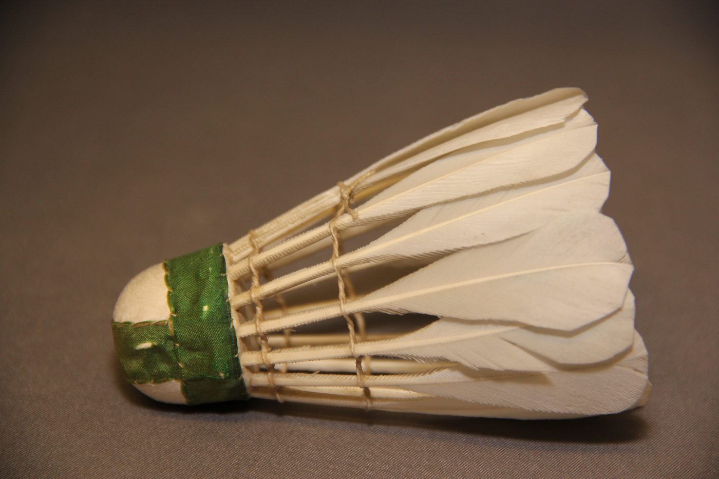 In 1899 some of the best shuttlecocks were manufactured in France, their leading shuttlecock was known as the ‘barrel’ so-called because of its shape which closely resembled that of a barrel. Chicken feathers were commonly used and they were inserted into the cork with the flat side of the quill to the outside. The natural inward sweep of the feathers produced the curved barrel shape which gave it its name. Most of the shuttles had a stitching halfway up the quills and another one around the quills on the top of the base. This is the first record of stitching around the feathers held in place by an adhesive. The base was covered with best French chamois leather and finished with a binding round its circumference and usually, but not always, a second around the dome. The shuttles were first made with chicken feathers, which had little strength, but after a few years experimenting they were replaced with the wing feathers of the goose, which proved to be very much stronger.
